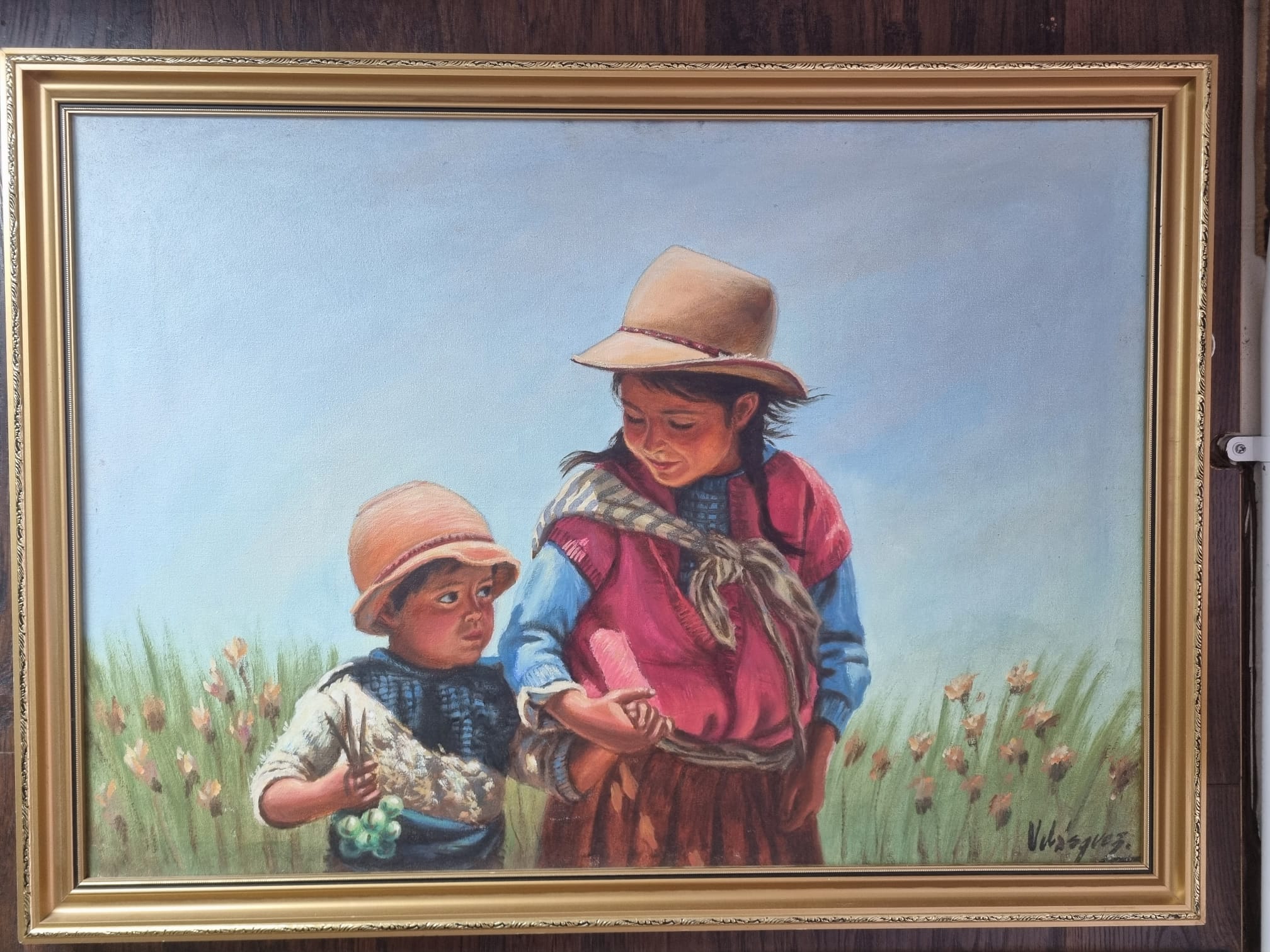 VELASQUE. Oil on Canvas. Size: 78cm x 57cm. £55. This stunning original oil painting by Velasque is painting on Canvas and framed.