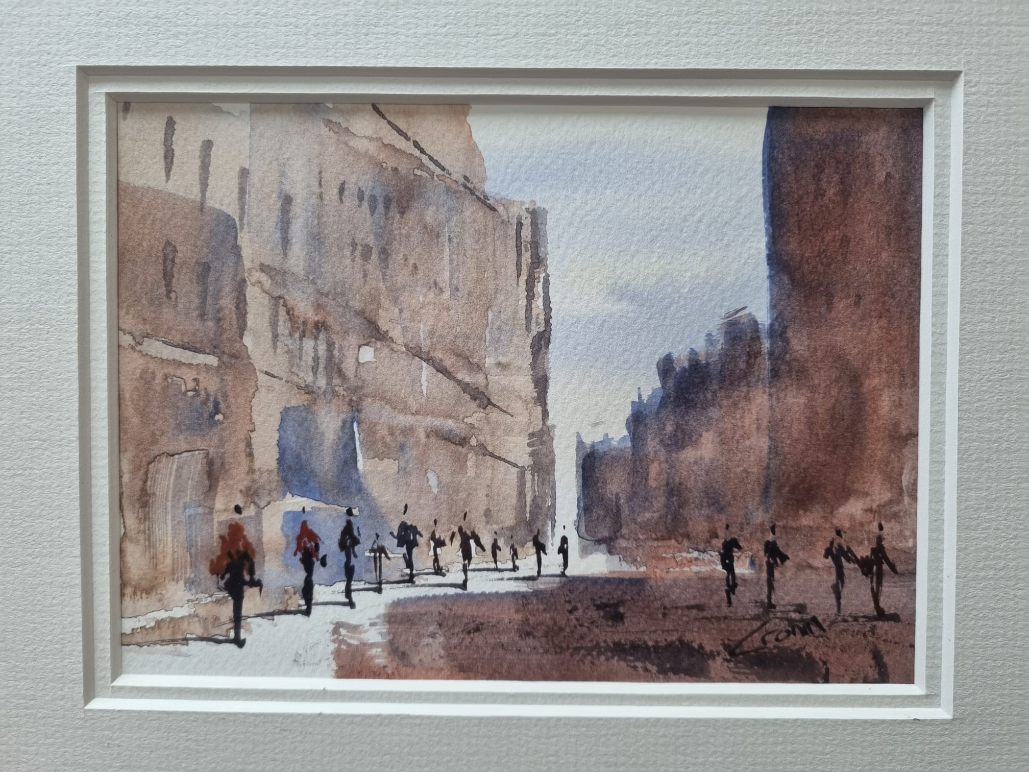 Size: 17.5cm x 13cm (visible artwork) ORIGINAL WATERCOLOUR. Buchanon Street, Glasgow. STEVEN CRONIN. £20